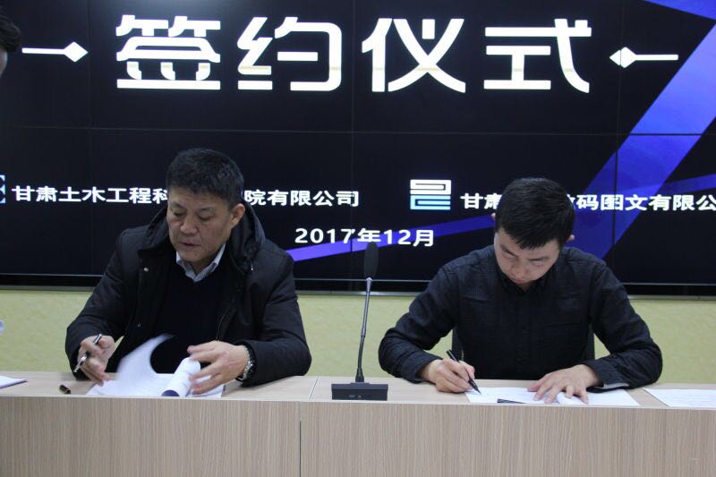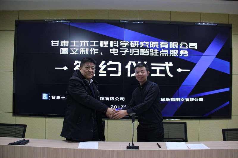 2017年12月19日郑建军副院长与甘肃建诚数码图文有限公司负责人在我公司学术报告会议厅共同签署了《图文制作、电子归档驻点服务》合同。