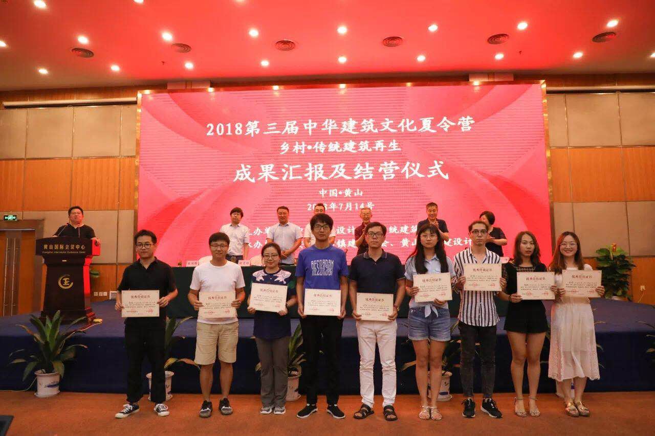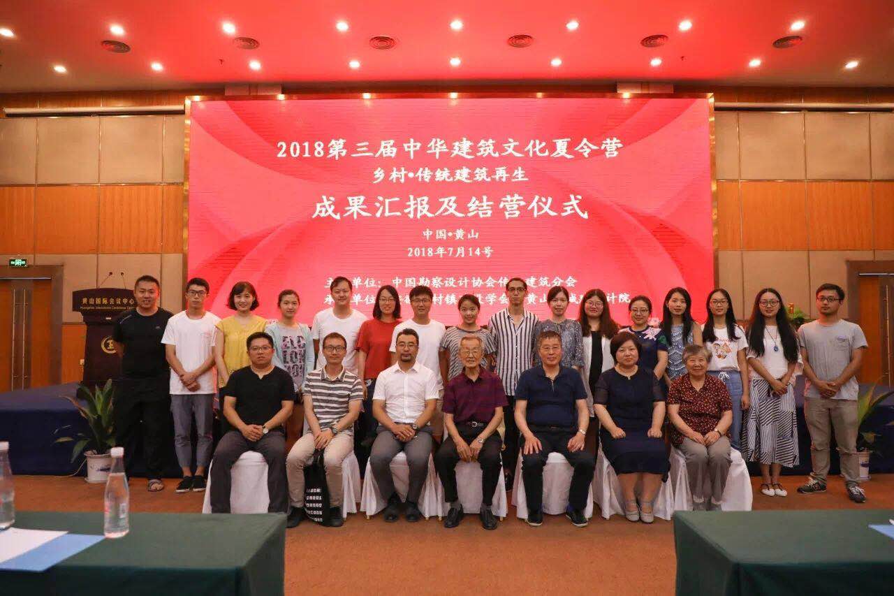 2018年7月14日,由中国勘察设计协会指导、中国勘察设计协会传统建筑分会主办、安徽省村镇建设学会和黄山市城建设计院共同承办的以“乡村·传统建筑再生”为主题的第三届中华建筑文化夏令营结营仪式在黄山国际大酒店举行。清华大学建筑学院教授单德启、中勘协传统建筑分会副会长黄滋、中勘协传统建筑分会秘书长王新华、中勘协传统建筑分会常务理事李早、安徽省村镇建设学会理事长程堂明、黄山市城建设计院院长陈继腾等领导以及营员等约90人参加了结营仪式。黄山市城建设计院副院长陆笑旻主持会议。