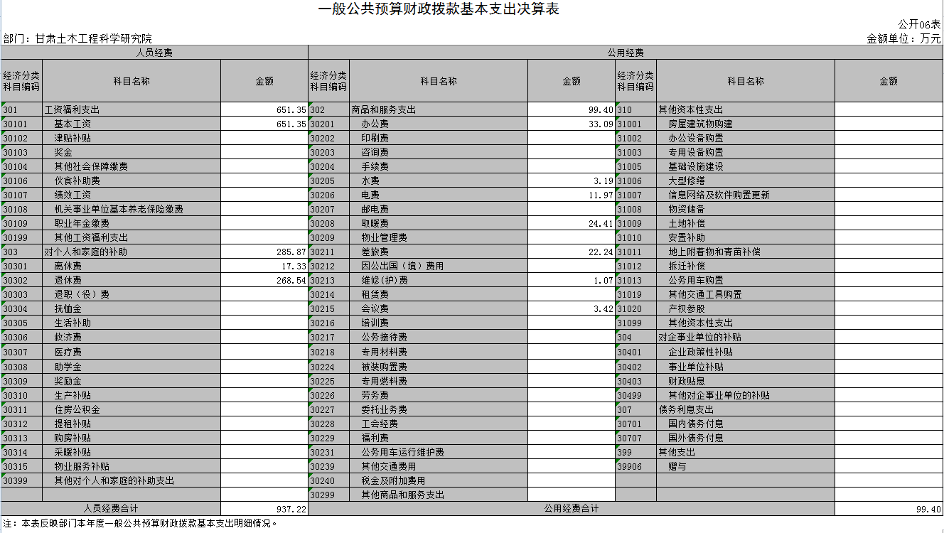 (四)本院一般公共财政拨款基本支出1036.62万元。其中:人员经费937.22万元, 较上年增加19.25万元,主要原因是增加了机关事业基本养老保险费支出10.82万元。人员经费用途主要包括工资福利支出651.35万元。公用经费99.40万元,较上年减少9.03万元,主要原因是维修费减少9万,公用经费用途主要包括办公费、水电费、取暖费、差旅费、会议费、维护费等。