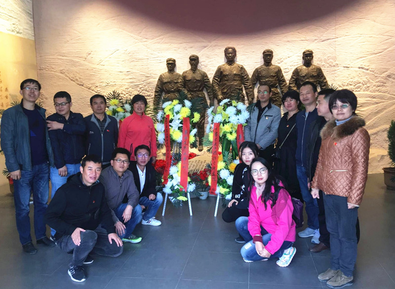在庄严肃穆的纪念馆前,大家奏唱国际歌,向革命先烈敬献花篮鞠躬致敬,并面向党旗,重温了入党誓词,重新感受了那份庄重的承诺,那份厚重的责任。