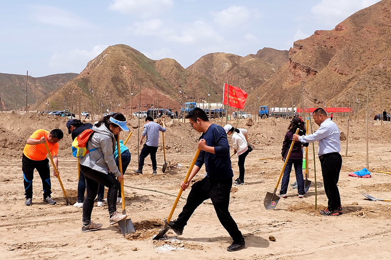4月20日,公司第一党支部组织共13名党员干部职工参加了由兰州日报社和德龙公司联合在西固区白土沟举办的、共有高校学生、企事业单位职工、社会爱心人士八百多人参加的植树活动。
