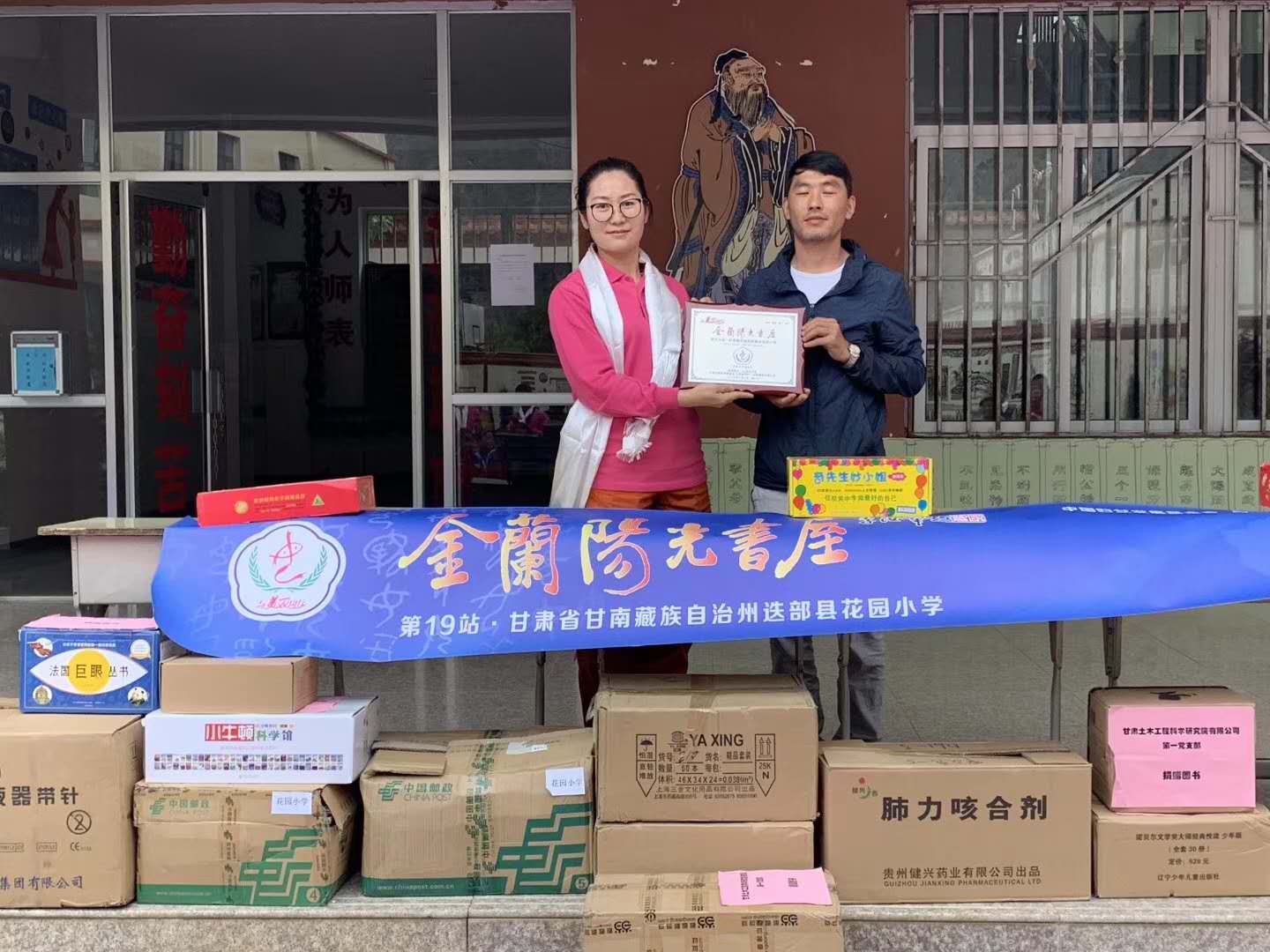 2019年6月8日甘肃省肿瘤医院义诊团将图书捐赠给迭部县旺藏镇花园小学,建成了第19个金兰阳光书屋。