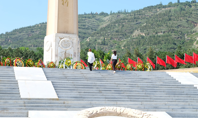 向烈士纪念碑敬献花篮,默哀致敬