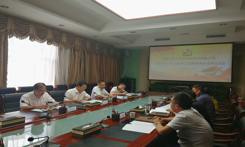公司领导班子成员围绕《中共甘肃土木工程科学研究院有限公司委员会关于开展“不忘初心、牢记使命”主题教育实施方案》调研安排,分别结合公司实际与各自分工,交流了调研成果。董红健同志一一点评了公司领导班子成员的调研成果,他强调,此次调研围绕生产经营中心工作、着眼解决实际问题开展调研,要把形成的好思路好措施及时转化为推动工作的具体举措和办法,实实在在发挥调研的作用,不断提升做好工作的能力和水平。要把各方面的风险、隐患、矛盾摸清摸透,有针对性地谋划部署工作,真正做到心中有数、手中有方。要紧紧抓住主题教育这个契机,扎扎实实落实好学习教育、调查研究、检视问题、整改落实等重点措施,不断改进工作作风,确保取得预期成效。要把主题教育同做好当前工作紧密结合起来,用主题教育焕发出的热情和干劲,做好公司各项工作。