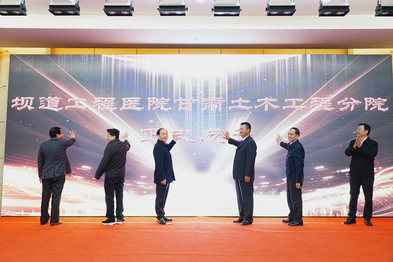 会上,宋忠庆、刘宁分别代表甘肃工程咨询集团、省住建厅作了致辞,王复明对坝道工程医院进行了详细介绍。公司党委书记、董事长董红健介绍了坝道工程医院甘肃土木工程分院筹建情况。王复明,宋忠庆、刘宁、王贵玉、吴天临、董红健为坝道工程医院甘肃土木工程分院揭牌。公司党委副书记、总经理马灵会主持大会。