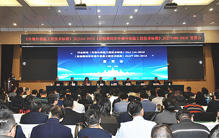 12月17日,我公司作为甘肃省建设科技与建筑节能协会会长单位,协办的建设科技与建筑节能协会《外墙外保温工程技术标准》JGJ144-2019和《岩棉薄抹灰外墙外保温工程技术标准》JGJ/T480-2019宣贯会在兰州八一宾馆召开,来自我省建筑节能和新型墙体材料管理部门、设计院所、工程施工、项目监理、检测单位、房地产开发企业、建筑节能材料生产企业、行业协会及相关从业人员350余人参加了会议。