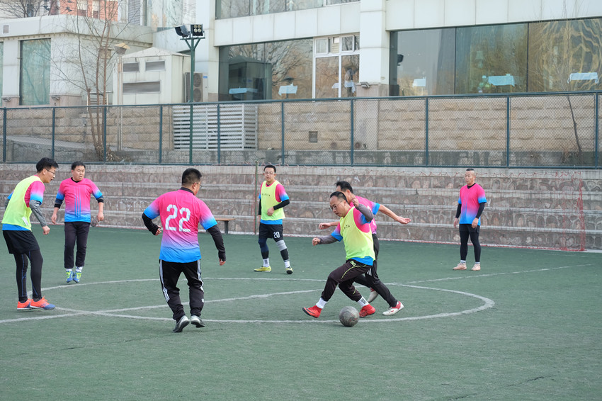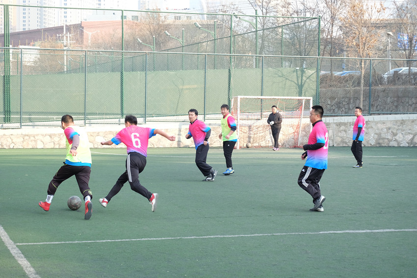 本次比赛由职能、设计联队对阵岩土、检测联队。虽然天气严寒,但大家在球场上的热情丝毫不减。队员们激烈拼抢,步履如飞,运球熟练,传球精彩,抢断漂亮,射门精准。比赛波澜跌宕,赛场精彩纷呈。最终岩土、检测联队技高一筹以8:7获得胜利。