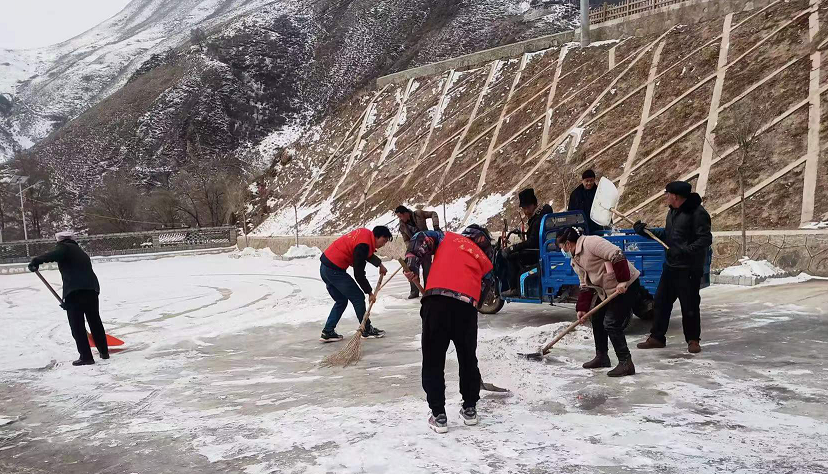 2月7日,农历大年初七,伴随着凛冽的寒风,卓尼县柳林镇东石沟村气温骤降,雪花纷纷扬扬地飘落,厚厚地积雪给人民群众的生活带来诸多不便。甘肃工程咨询集团驻村帮扶工作队在镇党委的统一部署下,不畏严寒,迅速投入到环境卫生整治、融化结冰路面和清扫积雪活动中。