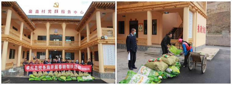 驻村帮扶工作队与包村干部一道早谋划、早安排、早动手,提前一周对农户耕地面积进行统计,精确计算发放有机肥的数量,从3月17号,开始利用一周时间为农户发放有机肥380吨,全力支持扩大洋芋、油菜种植,为春耕春播做好充足准备。同时,驻村帮扶工作队还发挥责任担当,积极联系卓尼县税务局(奤盖村帮扶单位)向其汇报村春耕计划,得到了税务局党委的高度重视,立即向工作队划拨资金采买有机肥、种子等农资产品,并及时向村民发放,给村民们送去了春耕的“及时雨”。