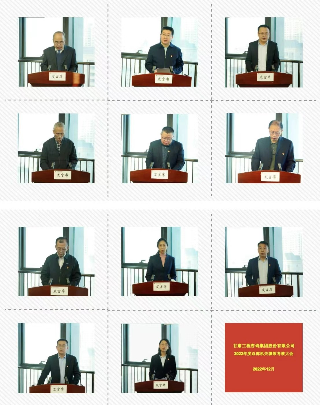 12月27日,甘肃工程咨询集团召开2022年度总部机关绩效考核大会,按照新修订的《机关绩效考核管理办法(试行)》,对各职能部门绩效、职能部门正副职岗位绩效进行考核,同时对职能部门正副职进行年度政治素质考察专项测评。党委书记、董事长马明主持并讲话。
