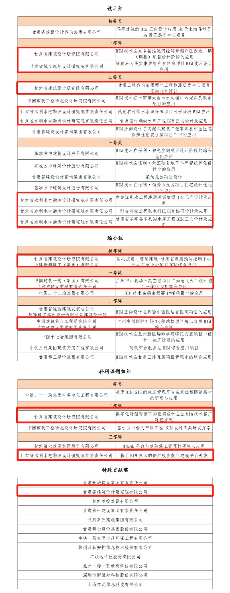 日前,甘肃省第五届BIM技术应用大赛结果公布,甘肃工程咨询集团共获得14个奖项,其中,“BIM技术在东乡县沿洮河经济带棚户区改造二期(调整)项目设计阶段的应用”等8个项目分别获设计组一、二、三等奖,“同心抗疫,智慧建造—甘肃省疾病预防控制中心公共卫生中心项目BIM综合应用”等3个项目分别获综合组特等奖及一、二等奖,“数字化转型背景下的勘察设计企业BIM技术推广路径探究”等2个项目分别获科研课题组二、三等奖,建筑设计院获特殊贡献奖。