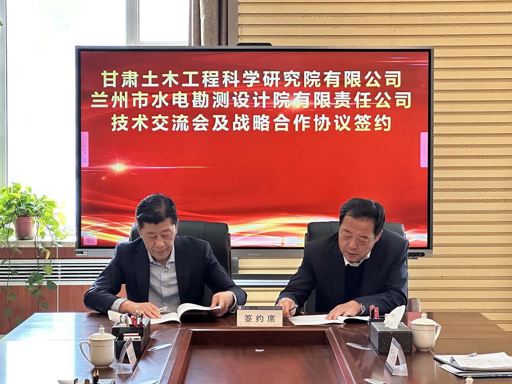 近日,甘肃土木工程科学研究院有限公司(以下简称“甘肃土木院”)与兰州市水电勘测设计院有限责任公司(以下简称“兰州市水电院”)在兰州签署了战略合作协议。此次签约,标志着两家公司在土木工程及水电勘测设计领域正式开启全面深入的合作模式。