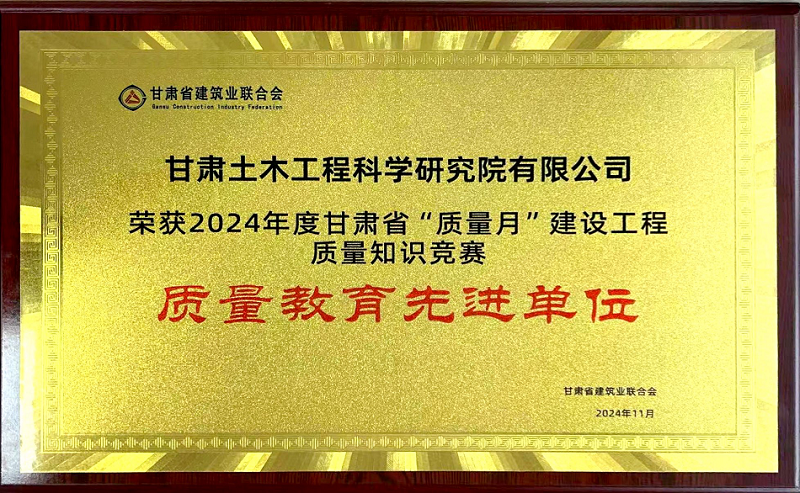 甘肃省建筑业联合会举办的2024年度甘肃省“质量月”建设工程质量知识竞赛结果已经揭晓,我公司荣获“质量教育先进单位”称号。