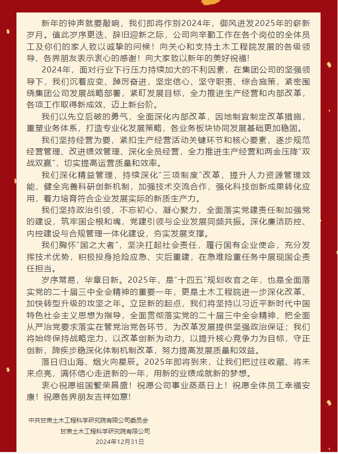 甘肃土木工程科学研究院有限公司2025年新年致辞