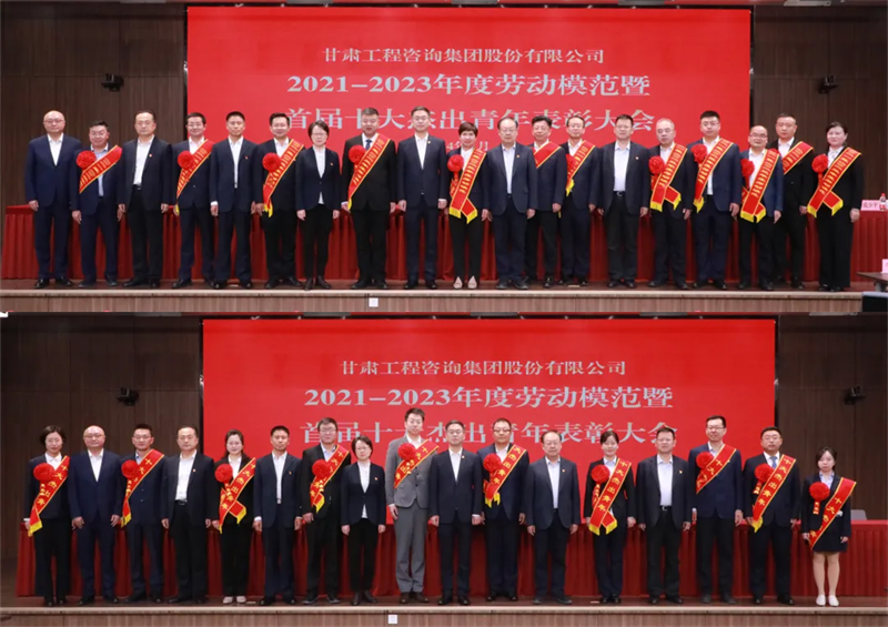 4月25日,甘肃工程咨询集团召开2021-2023年度劳动模范暨首届十大杰出青年表彰大会,隆重表彰在党的建设、深化改革、经营管理、科技创新等各项工作中涌现出来的12名劳动模范和10名杰出青年,大力弘扬劳模精神、劳动精神、工匠精神,激励广大干部职工奋楫中流、开拓进取,为加快建设全国一流工程技术产业集团再立新功。