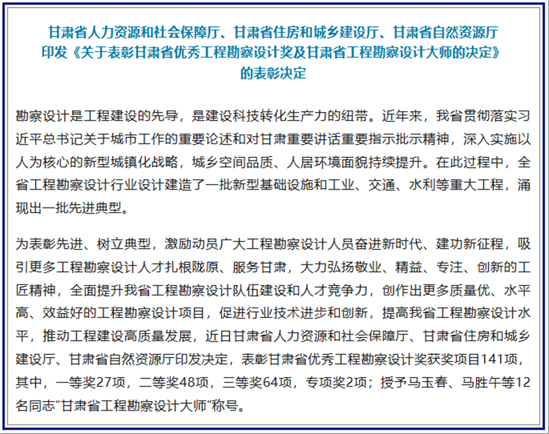 7.甘肃工程咨询集团斩获多项勘察设计奖项